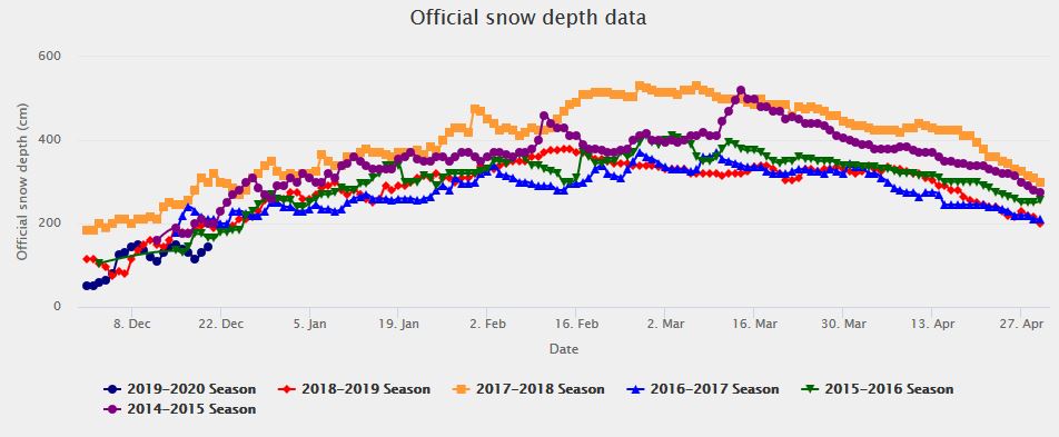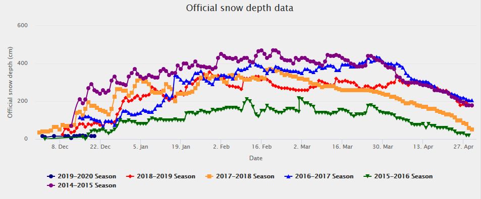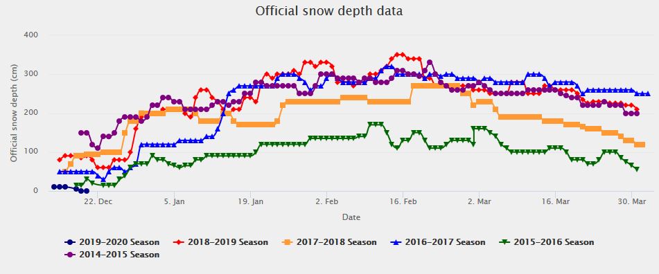A quick review of the long term snow-fall statistics, compiled over the last 6 years, confirms this year’s snow falls are way below average.